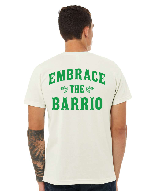 Wear your pride with the Embrace the Barrio T-shirt, a bold statement of love for community and culture. Designed with vibrant graphics inspired by the artistry and soul of the barrio, this shirt celebrates the beauty, resilience, and stories that make our neighborhoods unique.