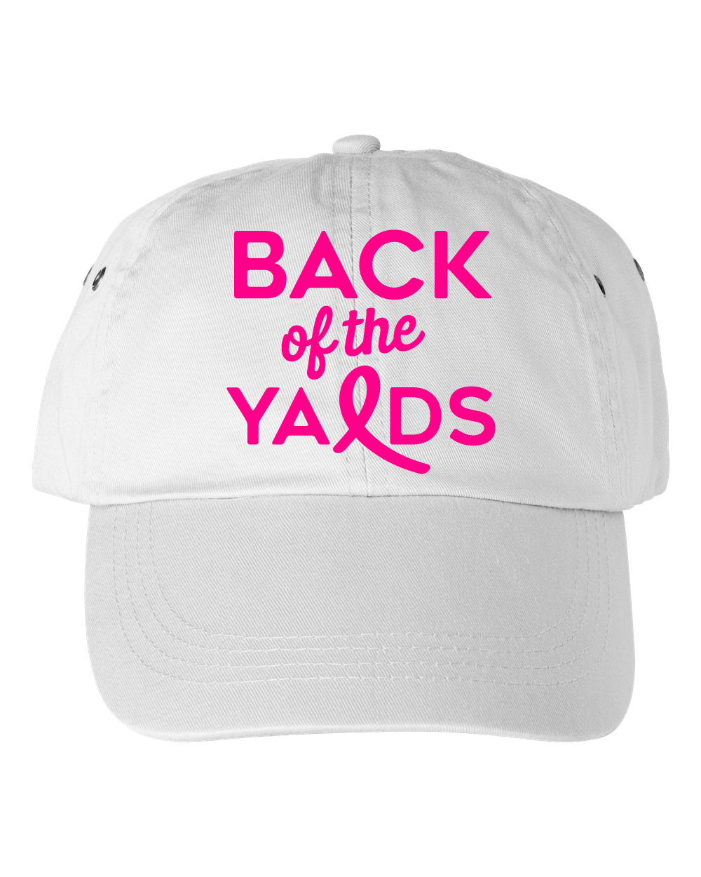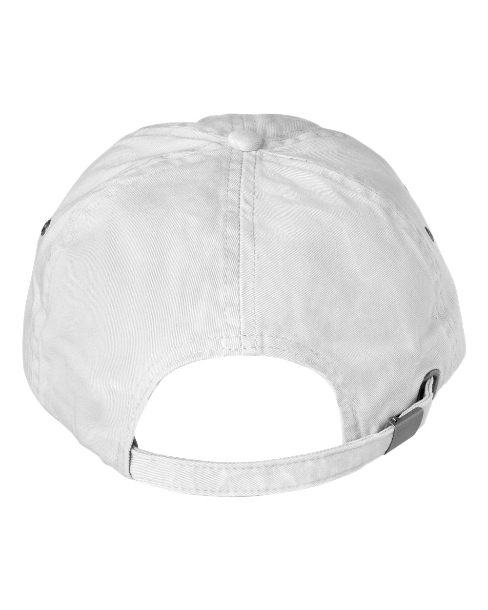 - Unconstructed crown with top button and two metal grommets on side panels
